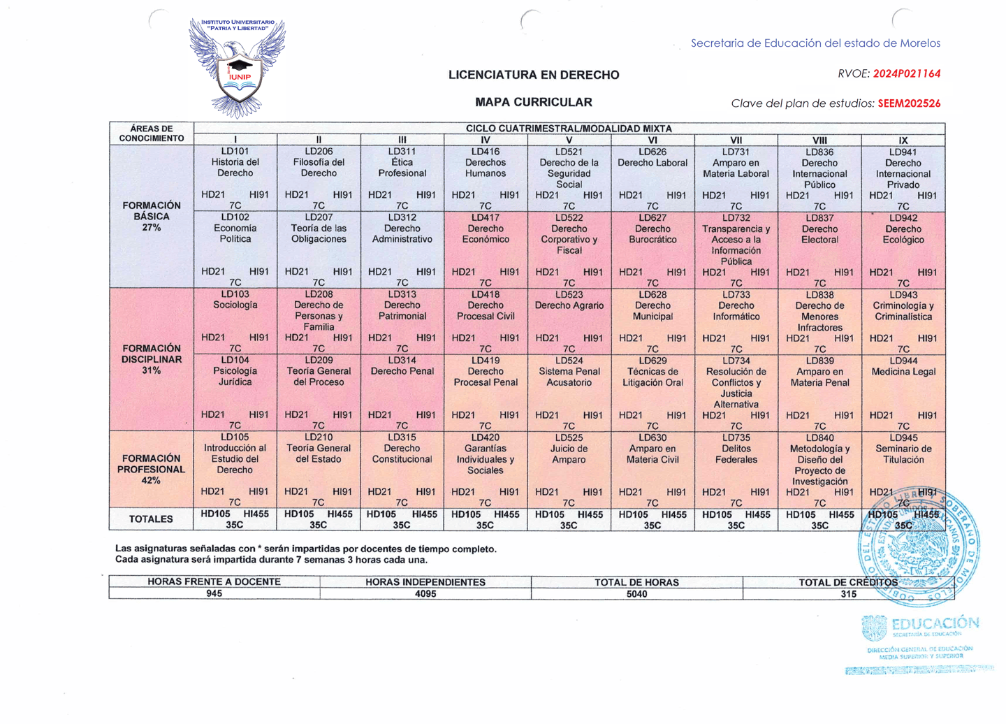 Clave del plan de estudios: SEEM202526 RVOE: 2024P021164